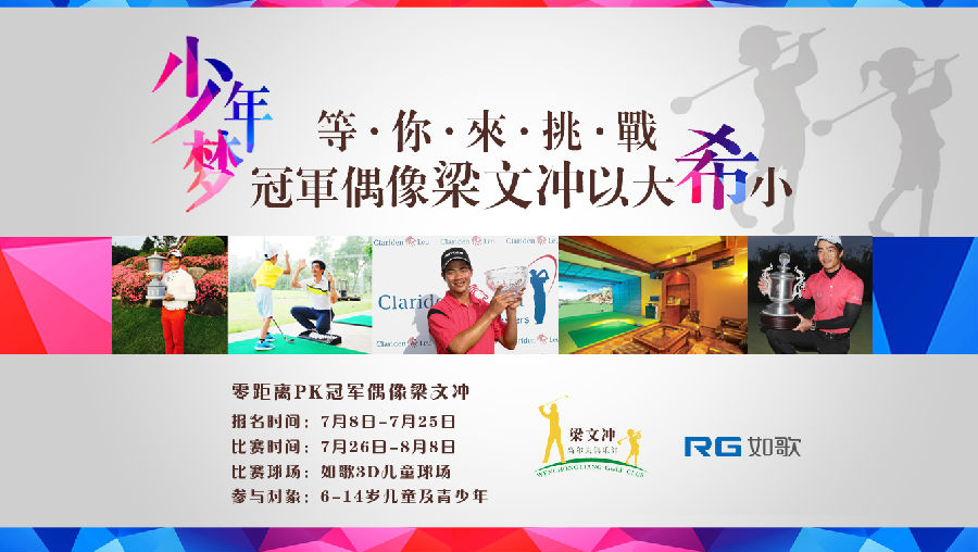 給青少年一個戰勝冠軍偶像的機會,掀起青少年高爾夫運動熱潮,消除時間、場地障礙,讓更多的孩子以最低的門檻參與高爾夫比賽。2016年7月8日至8月8日,梁文沖高爾夫球俱樂部攜手如歌重磅推出“梁文沖以大‘希’小”活動,依托如歌高爾夫線上賽事平臺,針對6-14歲青少年選手進行選拔比賽。本次比賽免費報名,最終脫穎而出的12名選手獲得與梁文沖零距離PK的機會,參與比賽的選手還有機會獲得梁文沖親筆簽名的神秘獎品。